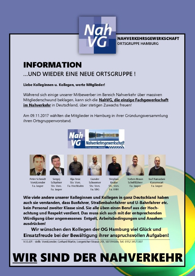 Nachdem sich die Kollegen/innen Anfang Januar solidarisch am Streik im LHO beteiligten stieg die Mitgliederzahl sprunghaft an. Erst im September 2016 kontaktierte das Betriebsratsgremium des BVH die Verantwortlichen der NahVG mit der Bitte um Hilfe und Unterstützung im tariflichen Bereich, nachdem die Bemühungen der Kollegen von Verdi um Entgelt und Arbeitsbedingungen zu verbessern monatelang erfolglos verstrichen.